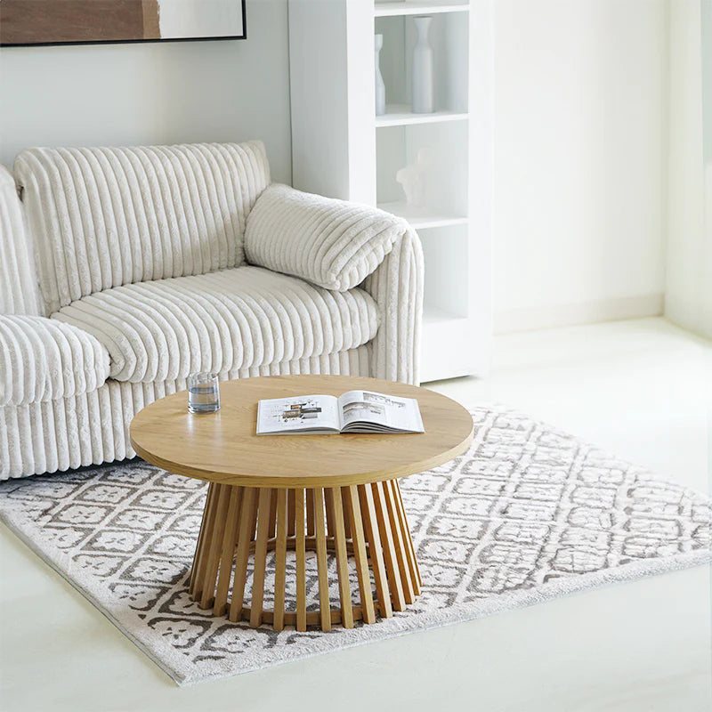 Living Room: The Veronica S Round Coffee Table has a smooth feel and is very light, which is the best for small spaces. You can pair it up with modular sofas that are easy to move around and they also come with washable covers. It is great for families!