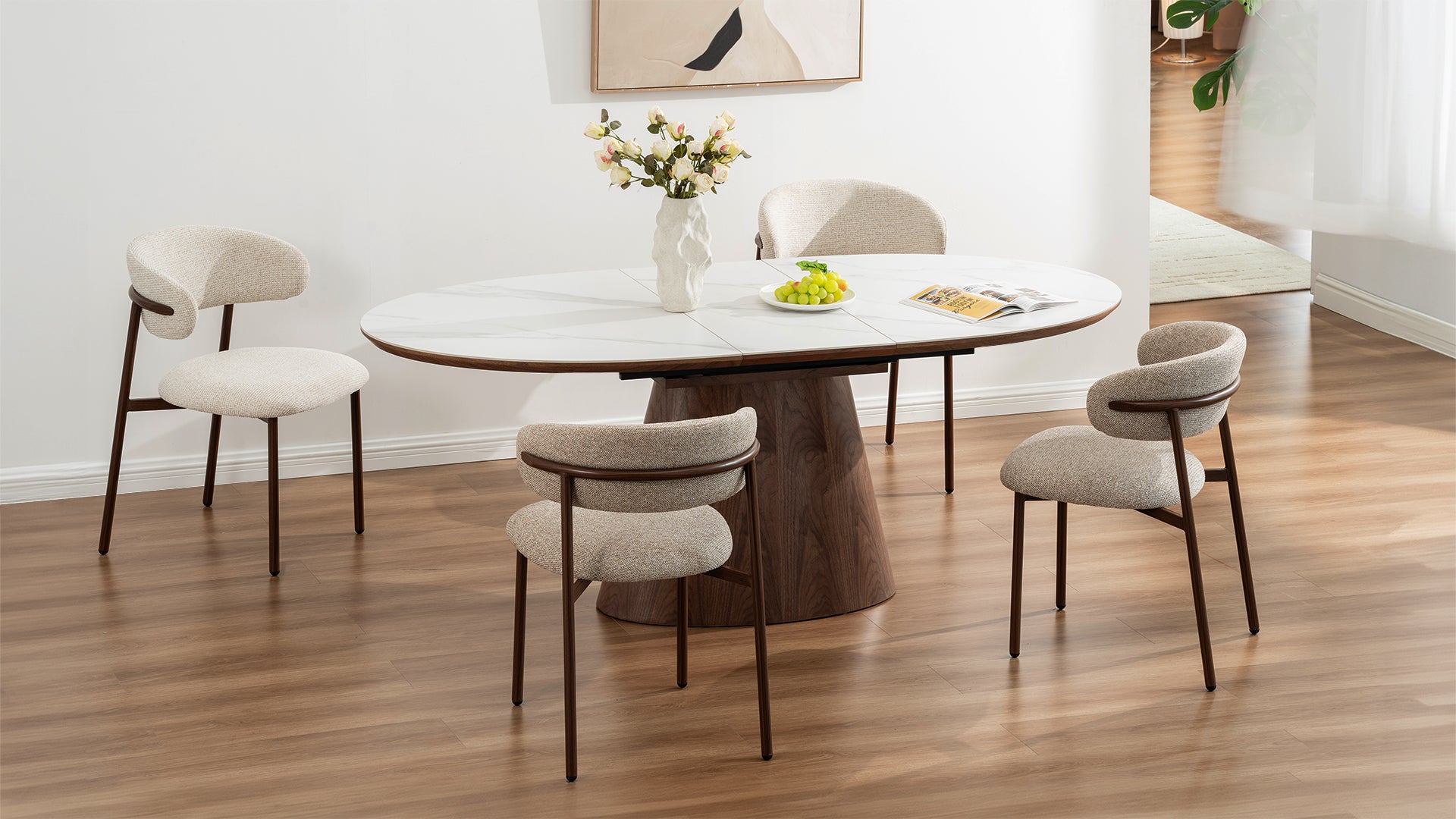 The website sells fabric swatches and you can click on the description to view the matching dining chairs.