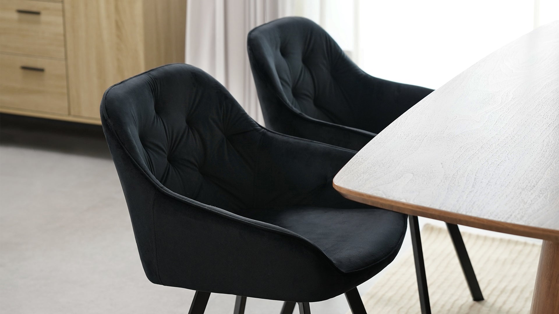 Built with sturdy legs and a convenient footrest, the Keaton Bar Stools strike a comfortable balance between style and function. The velvet upholstery is a doddle to wipe clean, so there’s no need to stress about everyday spills. If you already use an OFCASA Bar Chair or prefer a table and 4 dining chairs in your main dining area, these stools fit right in without disrupting your existing décor. They also complement a swivel dining chair setup if you want to create a cohesive look throughout your home.