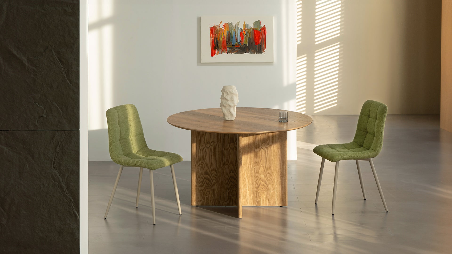 "nella sua vasta scelta ho optato per queste 🥰 verdi naturalmente e con le gambe che si abbinano in modo perfetto al colore del piano del tavolo. Trovo abbiano dato un tocco di freschezza all' ambiente!"