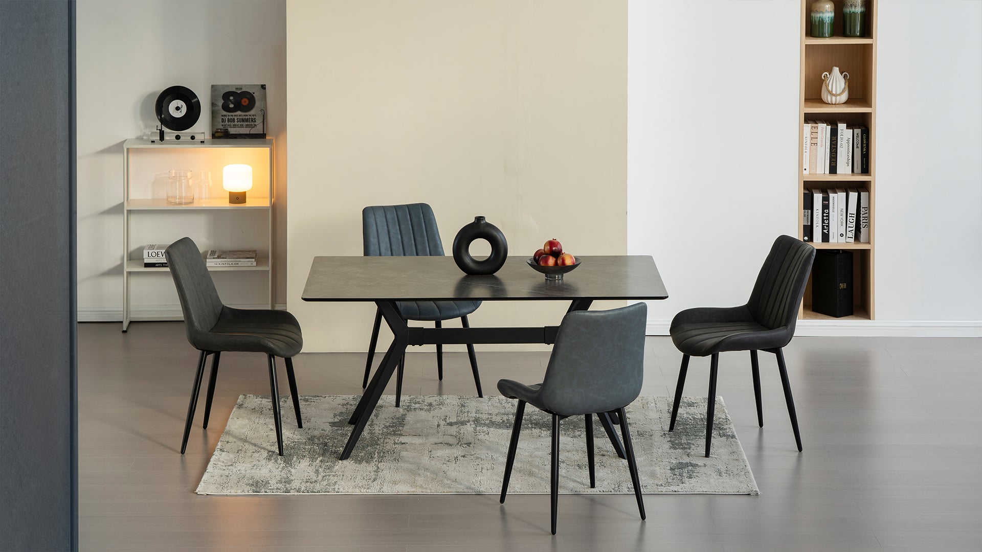Dark Grey Marble Rectangular Dining Table(160cm*90cm) Laila & 6 Dining Chairs Jarvis in Faux Leather
