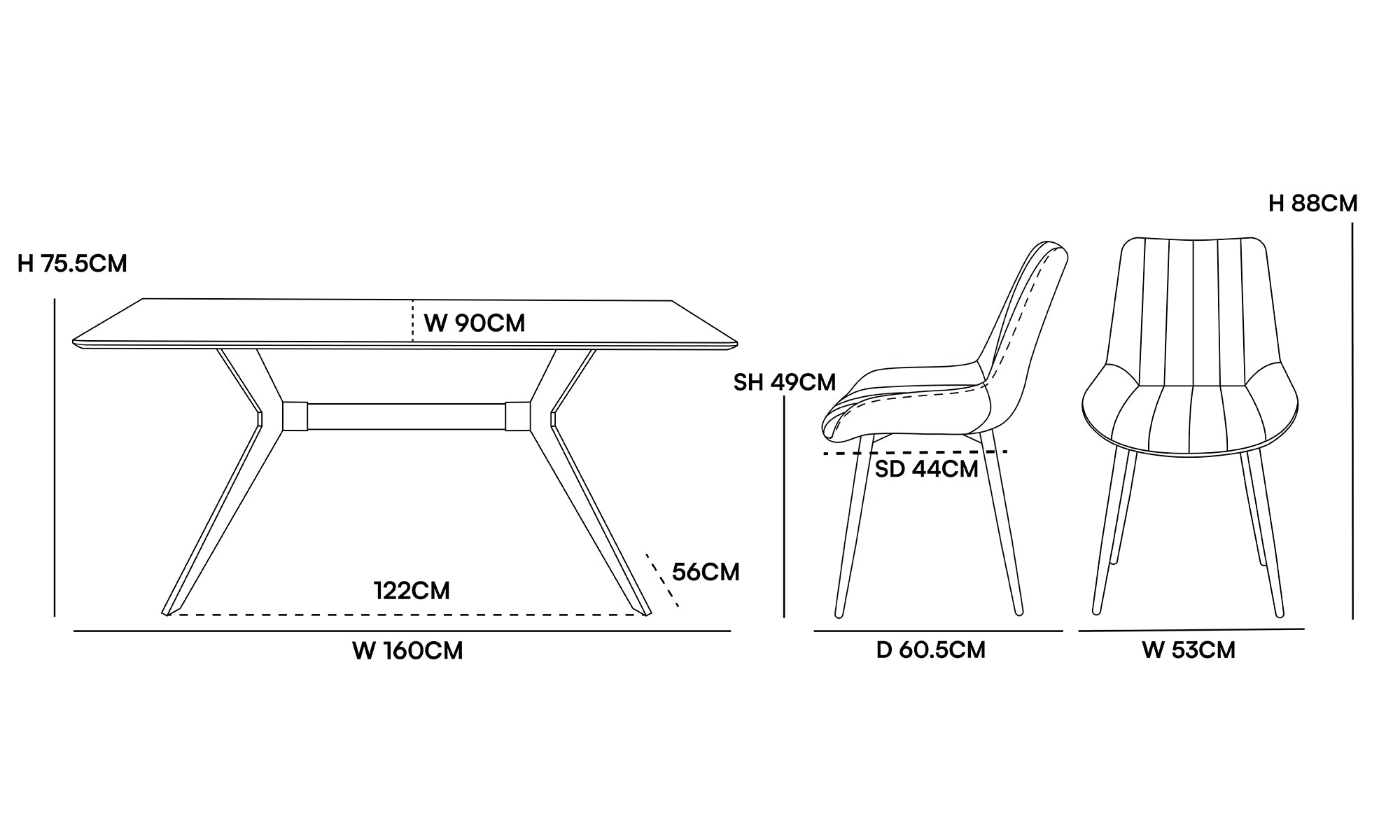 Elevate your dining experience with the Laila rectangular dining table (160 cm*80 cm) and 6 Jarvis dining chairs—a perfect blend of style, comfort, and functionality.