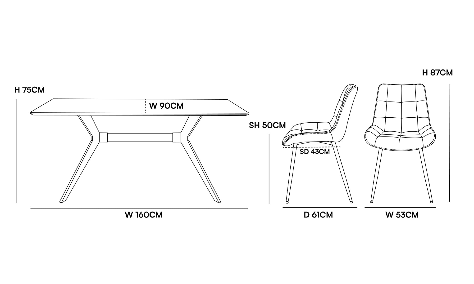With the Laila rectangular dining table (160cm*90cm) and 6 Orozco dining chairs, you get the ideal set for both the kitchen and dining room at home.