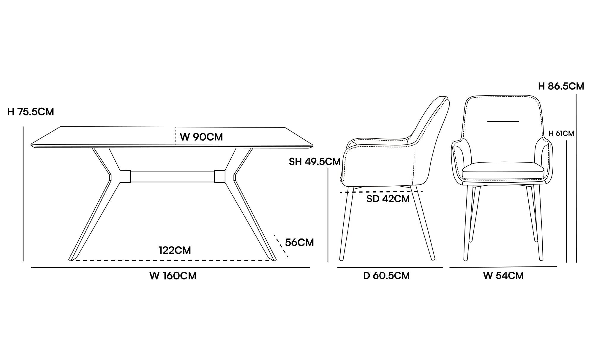 Dark Grey Marble Rectangular Dining Table(160cm*90cm) Laila & 6 Solis Dining Chairs