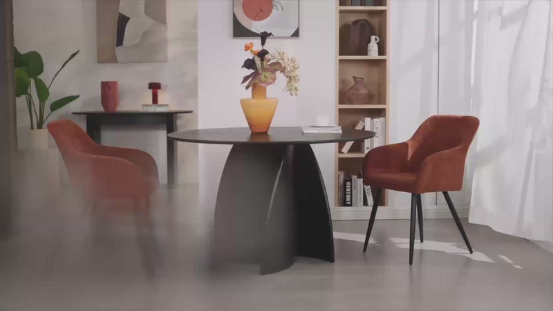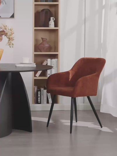 Crafted from durable PU leather, Frazer easily shrugs off spills and stains—just wipe clean and you’re good to go. The black metal legs are powder-coated for extra stability, and the angled shape adds a dash of flair that sets these chairs apart. Lean back and enjoy the supportive armrests, built to keep you cozy during long dinners or work sessions. Worried about picking the right color? Frazer comes in Dark Grey, Light Grey, Dark Brown, and Beige. If you’re still on the fence, grab a fabric swatch first—so you can be sure you’ve found the perfect match for your décor.
