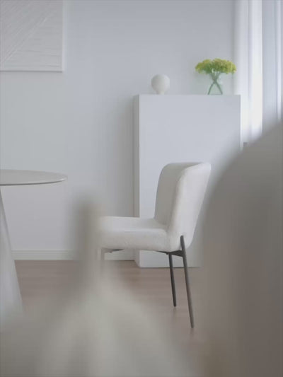 The Joslyn Dining Chair blends tactile luxury with modern simplicity. Wrapped in plush bouclé fabric, its cloud-like texture and wide backrest create an inviting feel from the first glance. Designed for everyday comfort, Joslyn’s clean silhouette adds softness and warmth to dining spaces without overwhelming the room.