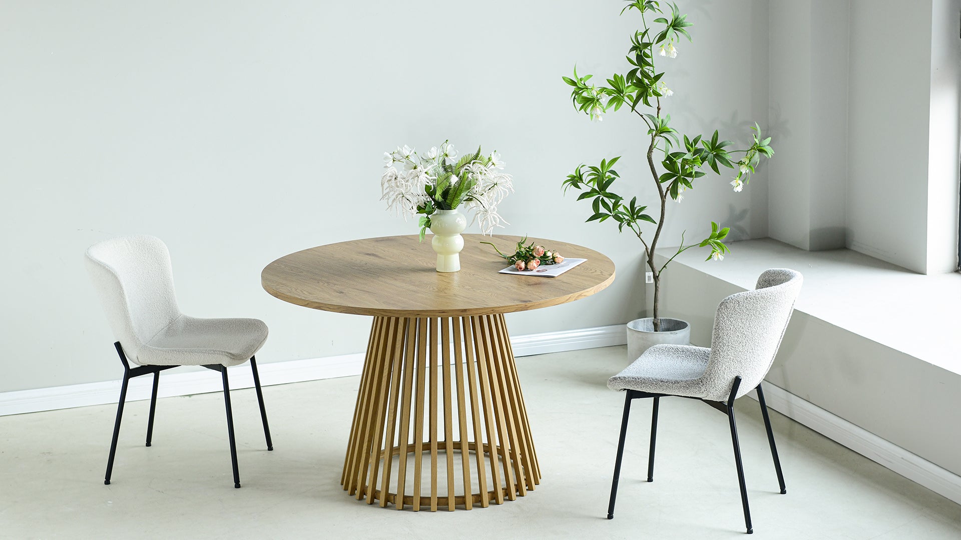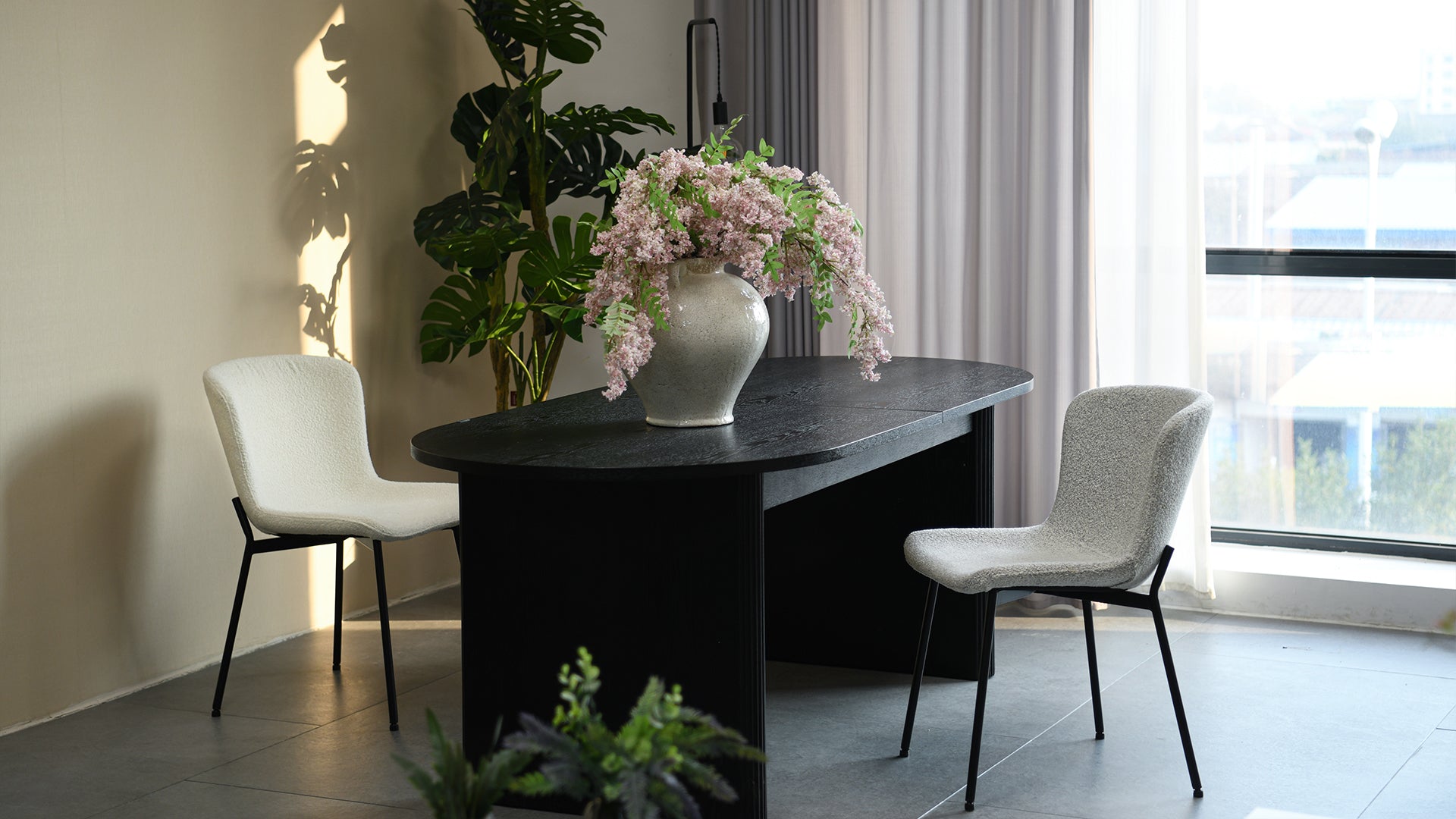 【Boucle Fiber Wrap】 The boucle dining chair is wrapped in boucle fiber, which brings a feeling of warmth and calmness and makes the fabric durable and resistant to wear and tear. This feature ensures that the chairs are comfortable and lightweight to use, while also being long-lasting.