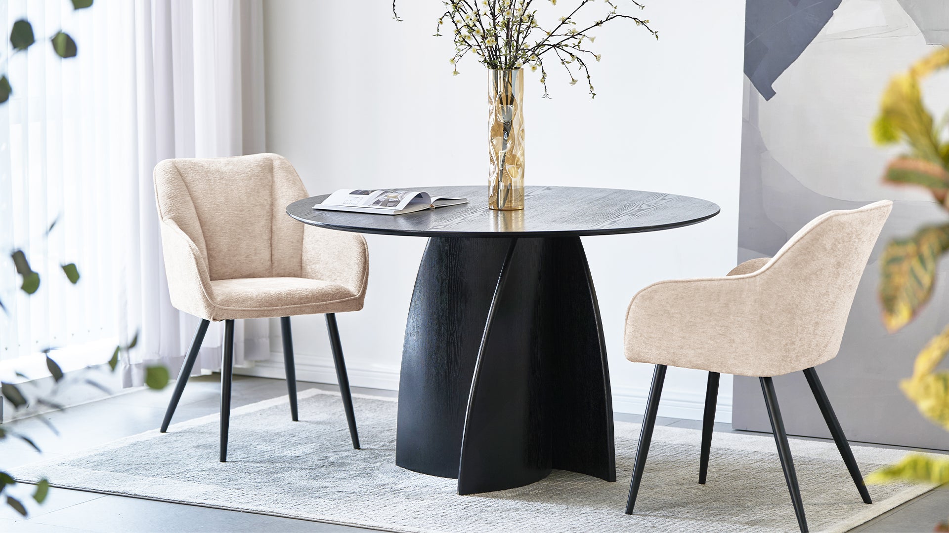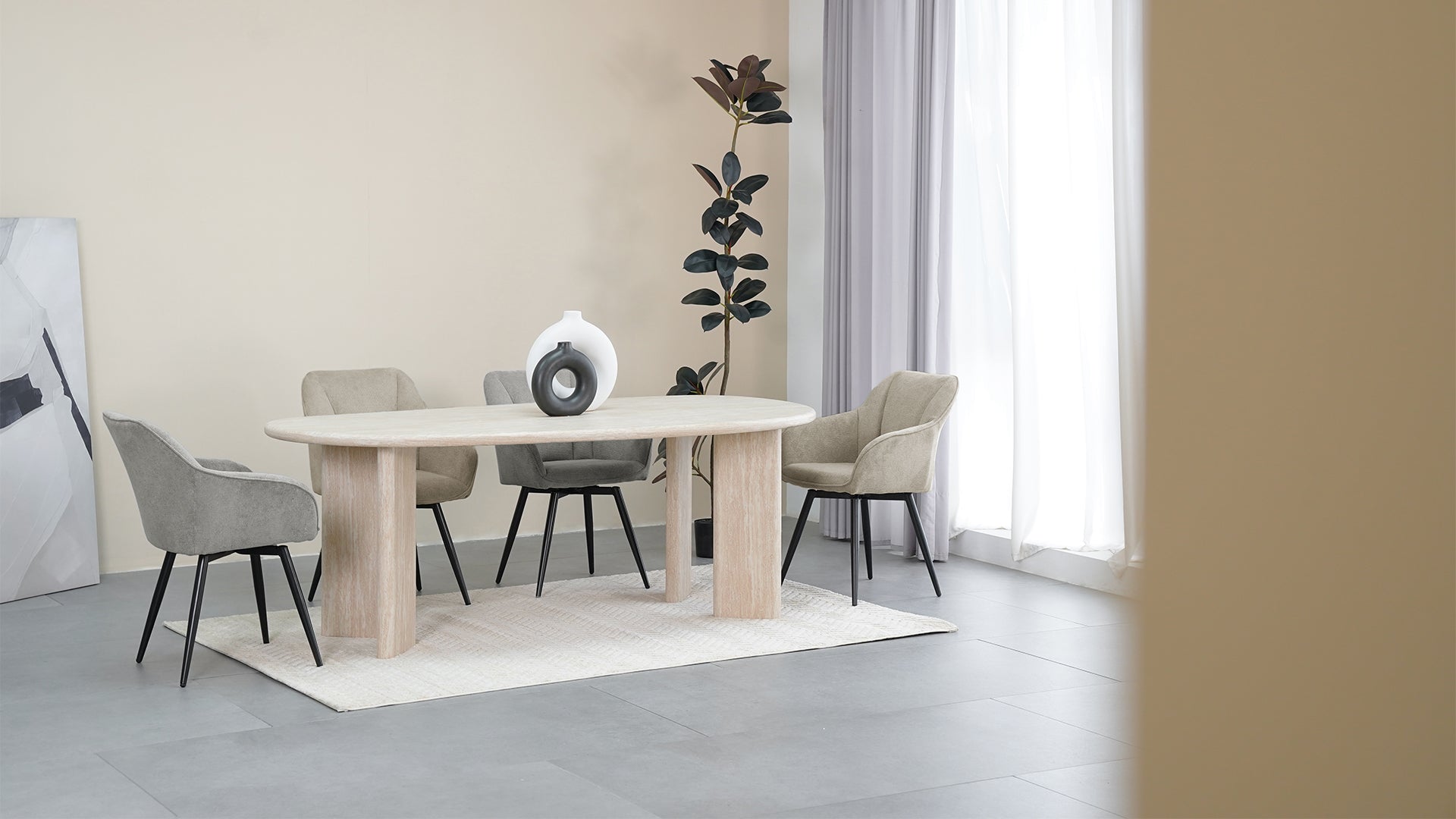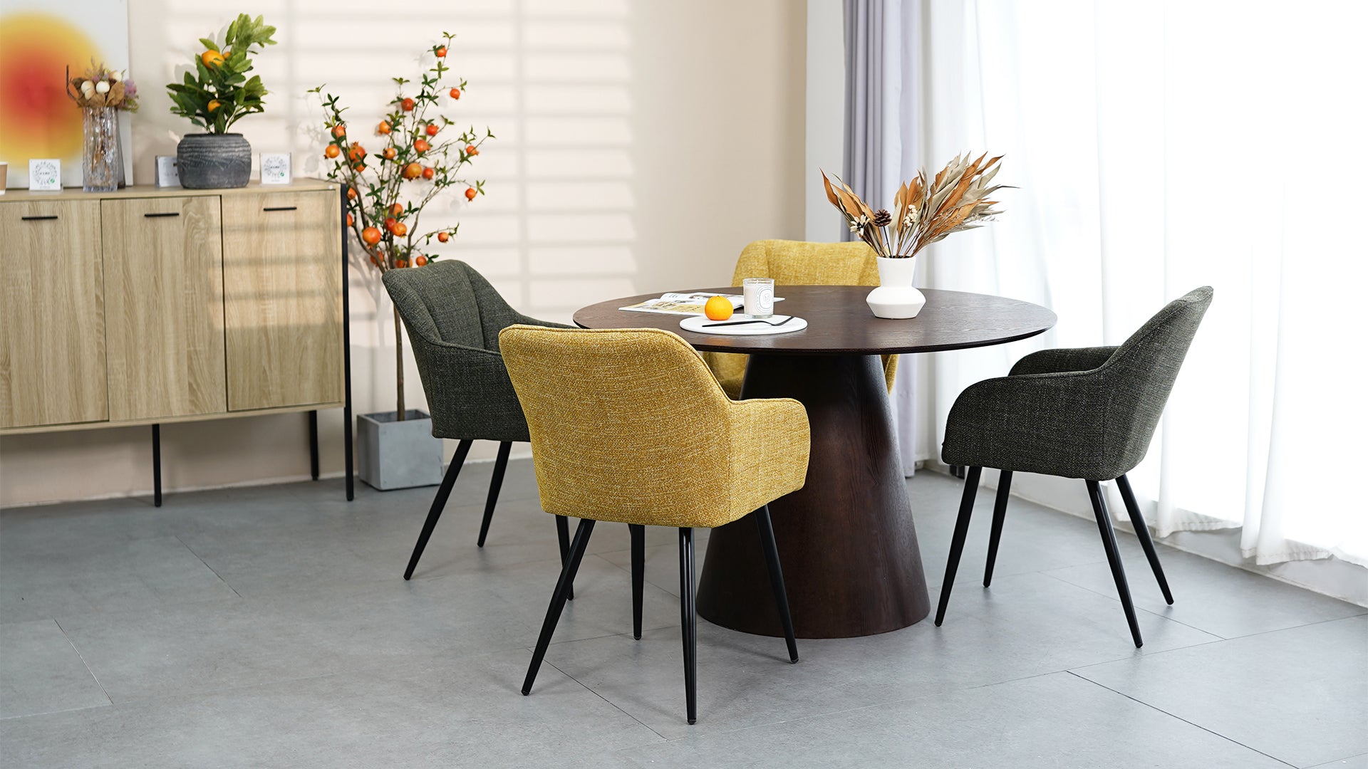 Beyond the spacious seats, comfortable armrest height, extra-thick cushions, and soft backrest, it offers a variety of fabric choices for different styles. From understated PU leather to colorful woven linen, and even luxurious combinations of PU and linen, these chairs add a playful touch to your dining experience.