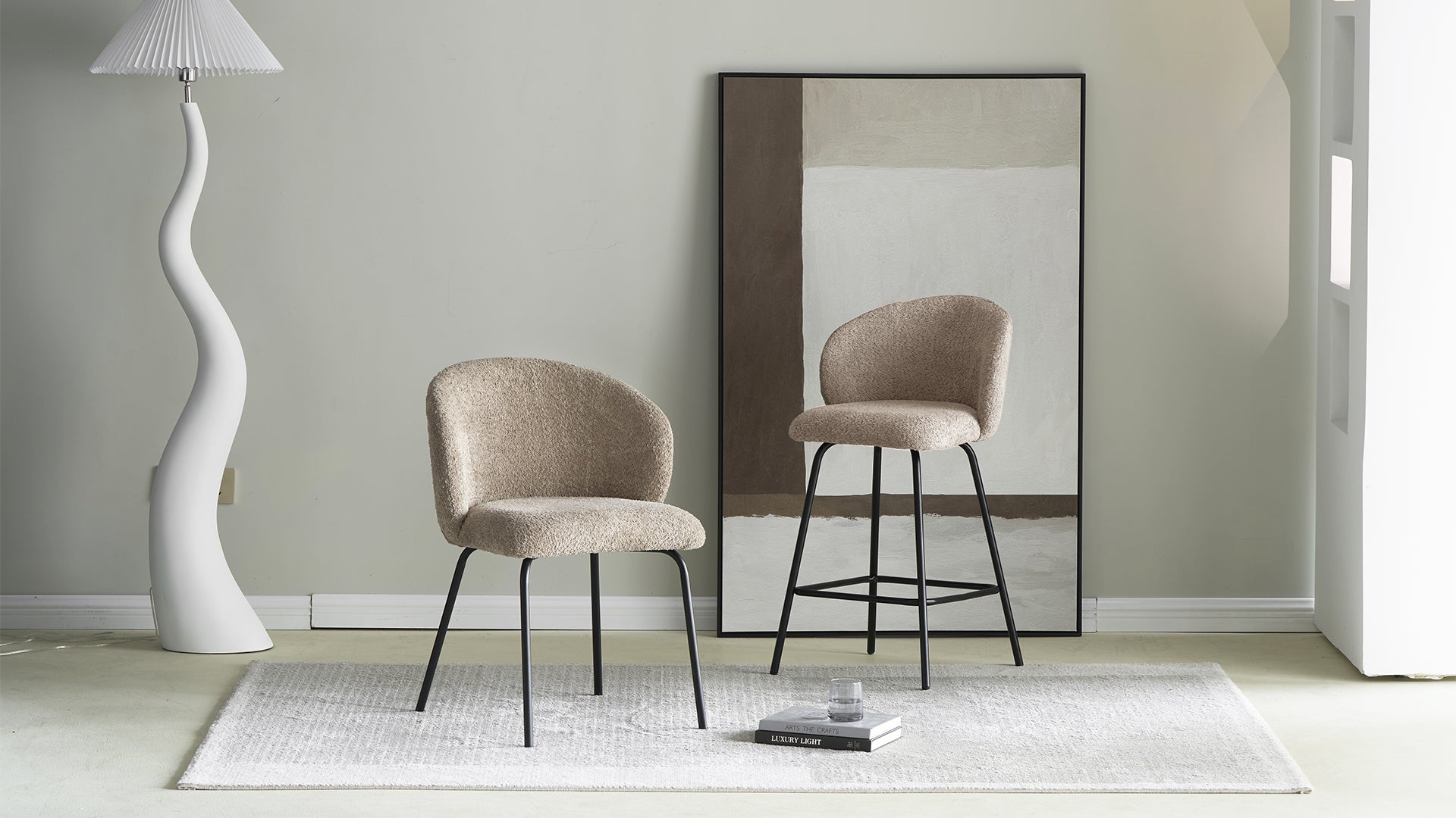 With a modern design, these boucle chairs suit any decor, creating a cozy, stylish vibe. The arched backrest offers ergonomic support for comfort during extended use.