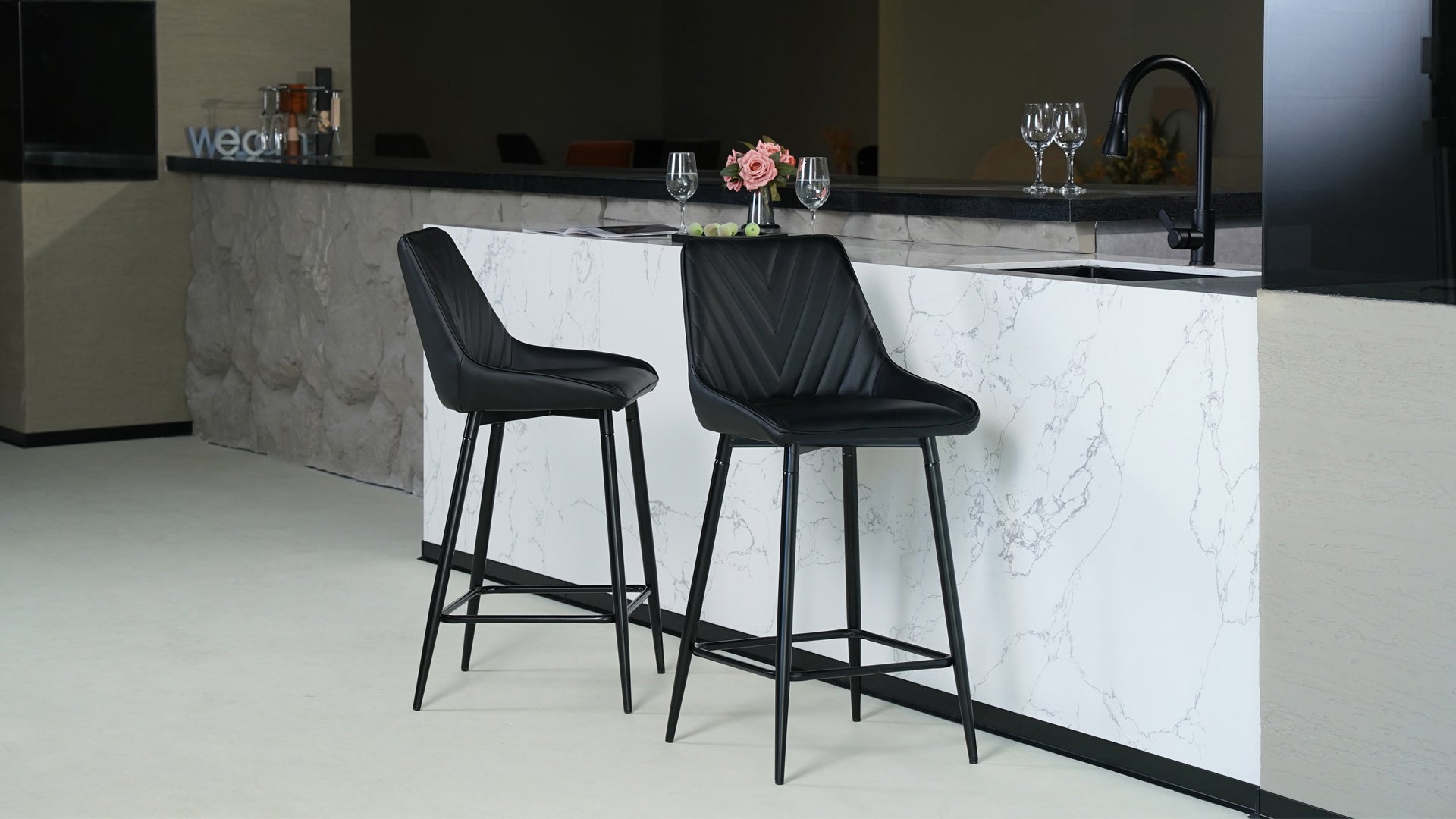 Crafted from premium faux leather, these stools offer a low-maintenance surface that’s easy to keep fresh. Their sturdy metal legs promise reliable support, while protective foot pads help prevent scuffs on your floors. If you already have a table and 4 dining chairs and just need a couple of bar chairs to complete the look, the Zack V fits in perfectly without clashing.