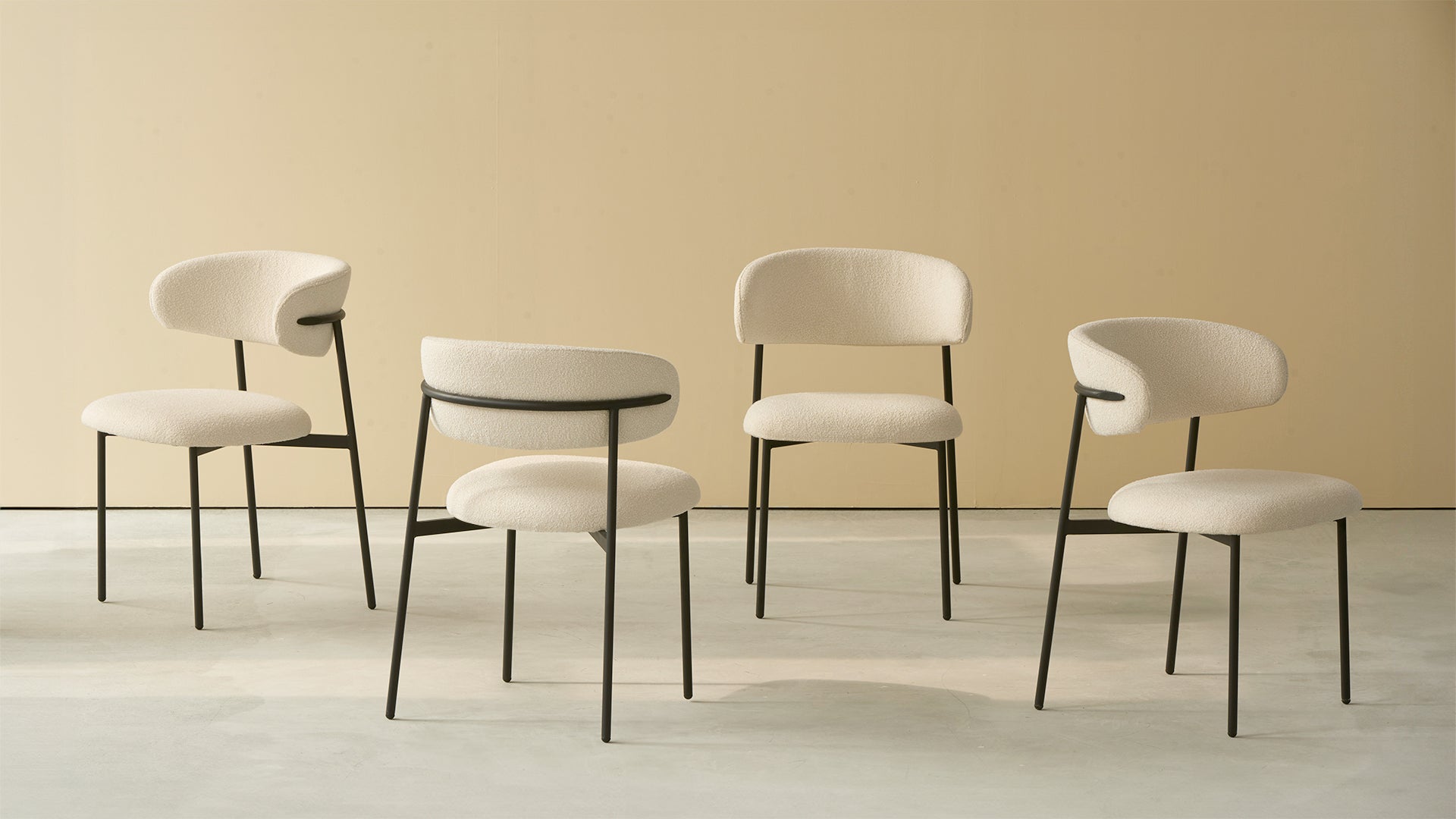 "Sleek black iron legs meet cozy bouclé fabric. This chic chair offers modern elegance and unmatched comfort."