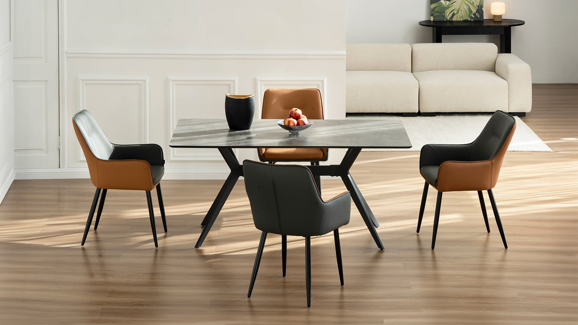 Pair our bestselling Yasin chair—now with sleek light-toned legs—with the Veronica table, for a perfectly coordinated, modern dining set. Clean lines, fresh tones, and timeless style.